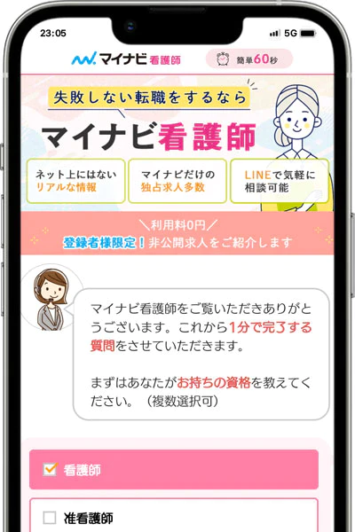 マイナビ看護師では、雇う側の要望があり、条件に合う人材だけを紹介するために非公開にしています。看護師としてのキャリアや保有する資格が多い方は、誰よりも早く非公開求人を紹介してもらえるでしょう。